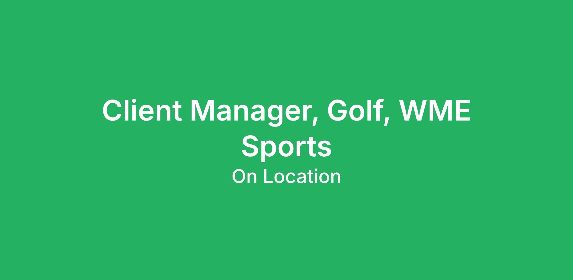 Client Manager, Golf, WME Sports