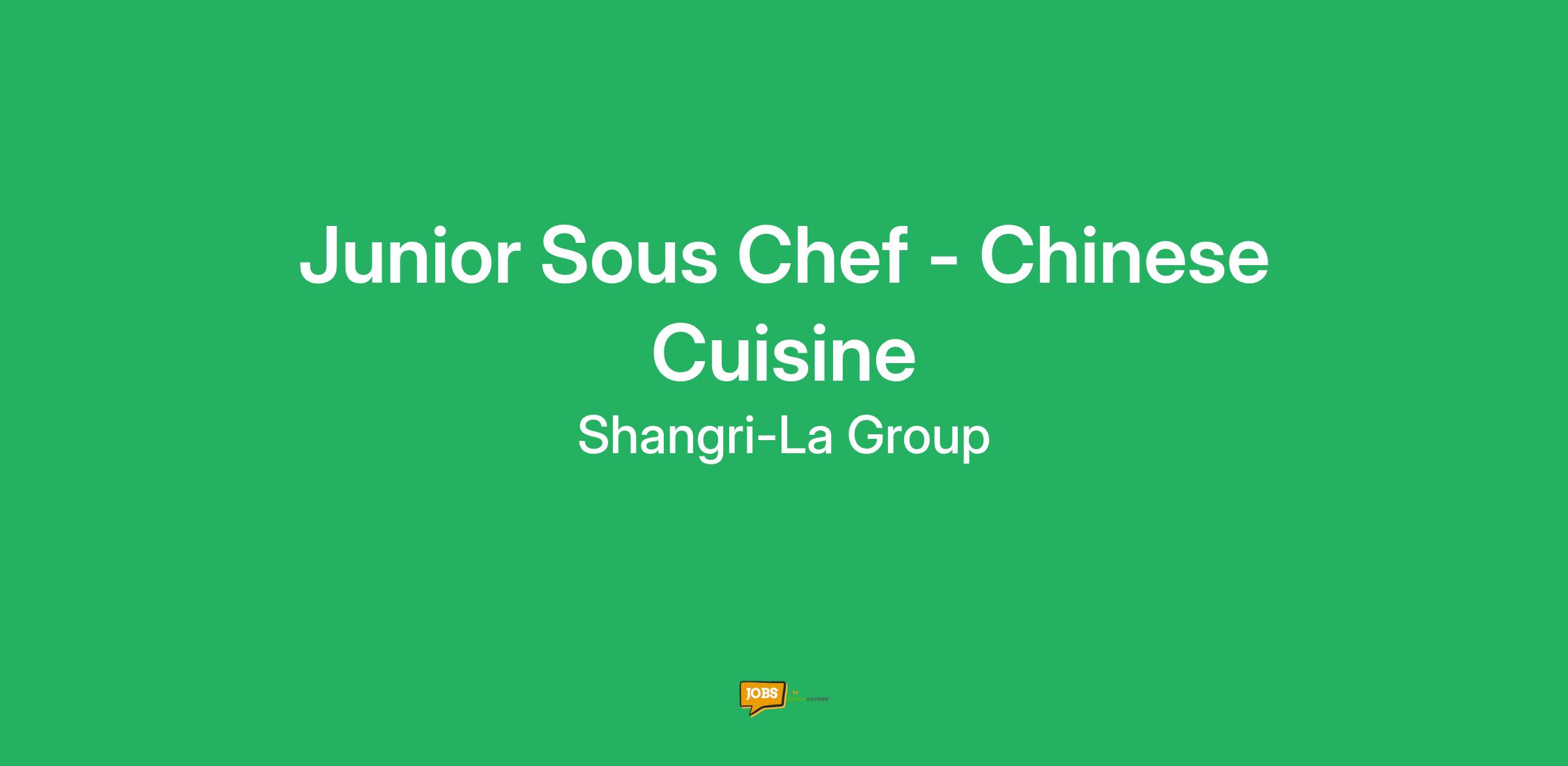 We're looking for a Junior Sous Chef (Chinese Cuisine) required for our Culinary Division.